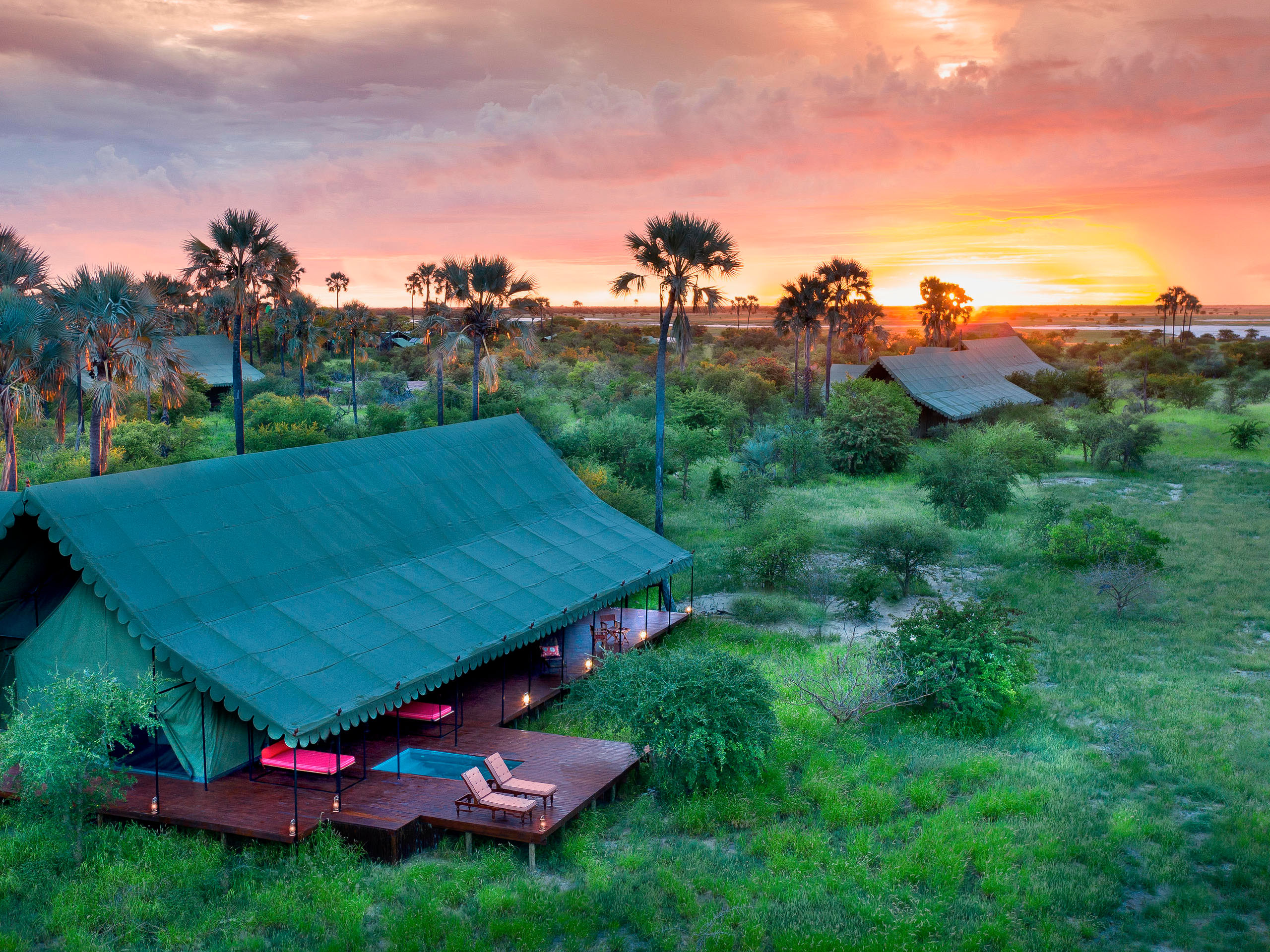 Jack’s Camp gilt seit Jahrzehnten als Ikone stilvoller Safari-Erlebnisse in der Weite der Kalahari-Wüste. Das authentische Zeltcamp im eleganten Stil der 1940er-Jahre liegt eingebettet in eine Palmenoase und verbindet nostalgischen Charme mit außergewöhnlichem Komfort. Zum Camp gehören ein kleines privates Museum, ein liebevoll gestalteter Shop, das legendäre Teezelt sowie ein Pool-Pavillon – Orte voller Atmosphäre und Charakter.