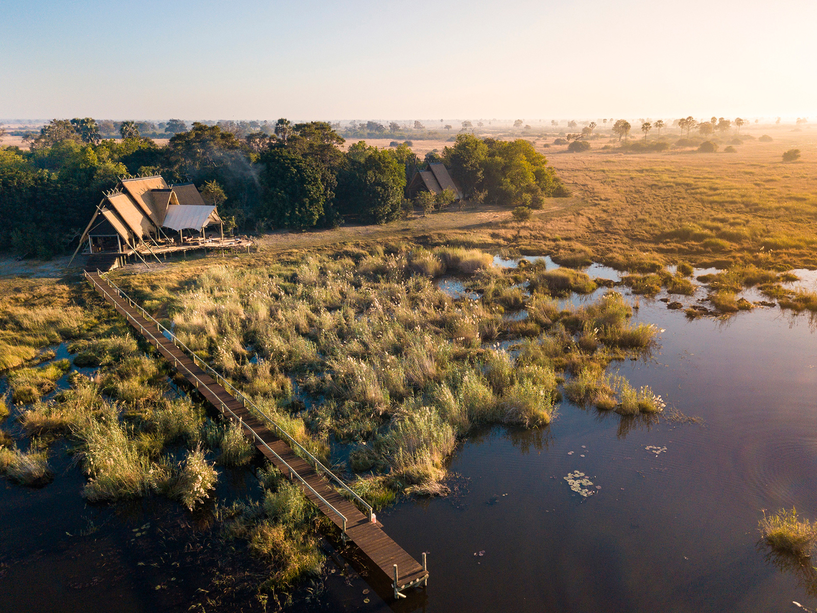 Die Landschaft vermittelt ein starkes Gefühl von Weite und Abgeschiedenheit – ein ursprünglicher afrikanischer Lebensraum, in dem sich eine außergewöhnliche Vielfalt an Wildtieren frei bewegt. Architektur und Gestaltung des Camps verbinden Einflüsse europäischer Eleganz mit den Traditionen der Mokololo- und Bayei-Kultur und schaffen eine Atmosphäre, die Natur, Geschichte und Stil harmonisch vereint.