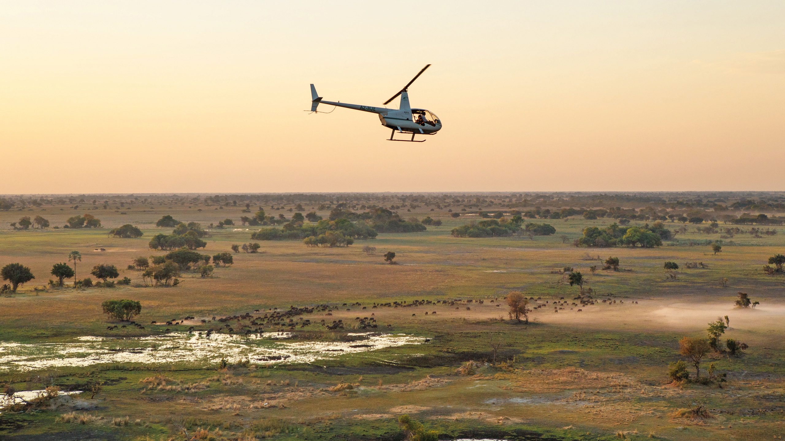 Erleben Sie das Okavango- Delta aus der Vogelperspektive bei einem Helikopterrundflug mit offenen Türen. Ein einmaliger Blick auf Wasserwege, Tierherden und unberührte Wildnis - spektakuläre Luftaufnahmen garantiert!